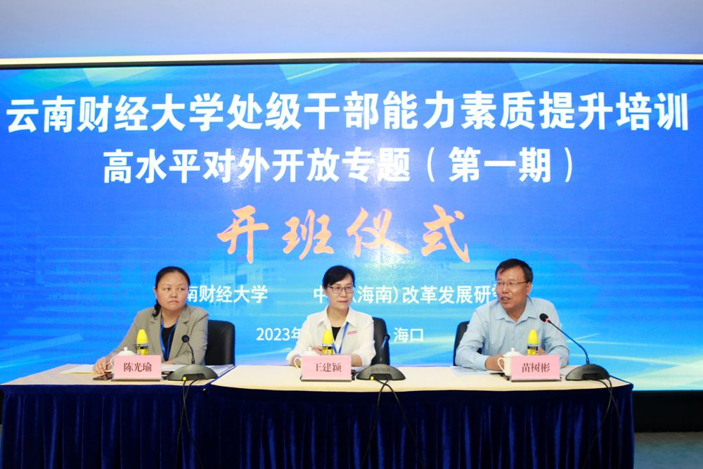 10月23日,beat365英国官方网站处级干部能力素质提升培训高水平对外开放专题(第一期)的学员抵达中国(海南)改革发展研究院(以下简称“中改院”),中改院院长迟福林向学员们阐述了中改院近期的研究重点,对学校给予中改院的信任支持表示感谢,期待双方继续加强合作、深化交流,为服务国家战略和区域经济社会发展贡献更多力量。24日,培训班开班仪式在中改院国际学术交流中心举行。校党委书记王建颖作开班动员讲话,校党委委员、副校长余怒涛、李正彪,中改院机关党委书记苗树彬、学术网络与教育管理办公室主任黄东晖出席开班仪式。beat365党委副书记陈光瑜主持仪式。