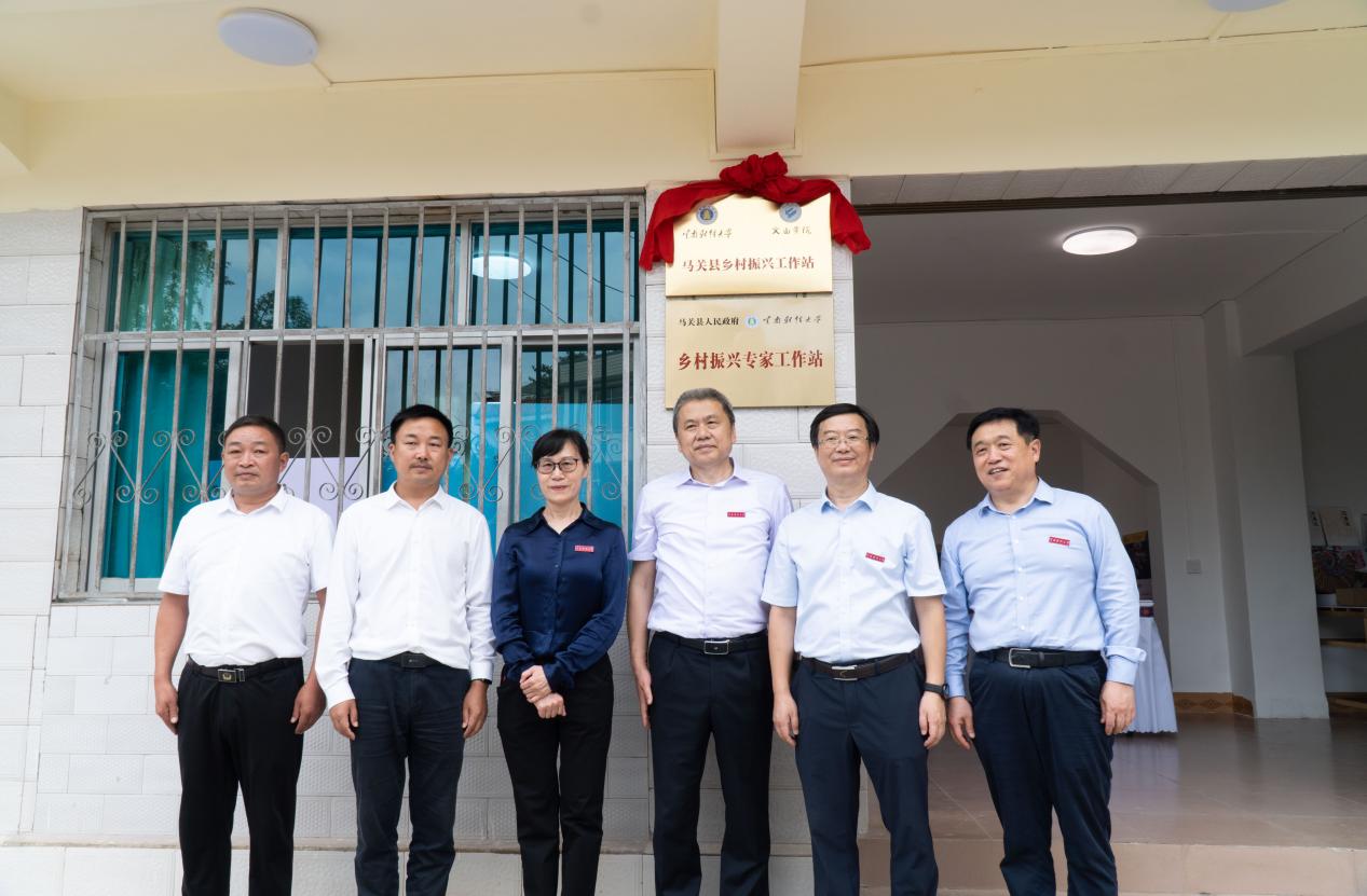 在马关县,学校领导一行实地考察马洒森林步道建设及马关县民族服饰创业产业园运营情况,看望传媒与设计艺术学院本科毕业生扎根马关的创业团队,并为beat365英国官方网站乡村振兴专家工作站揭牌。