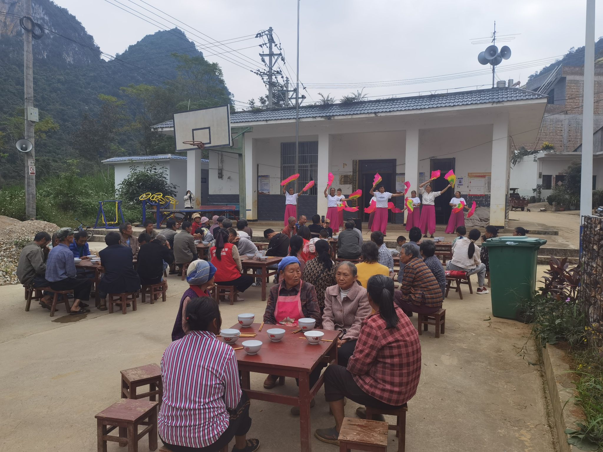 活动当天,驻村工作队和各村委会精心组织,盐塘村委会的老年舞蹈队表演、马额村委会的芦笙和魔术表演、坡脚村委会的棋牌竞技活动等,内容丰富有趣,老人们欢聚一堂,洋溢着浓厚的节日氛围。驻村工作队还对学校离退休教师及北京中欧EMBA 22BJ4班捐赠的物资进行了发放,为村里的老人们带来了实实在在的关怀与温暖,也体现了社会各界对农村老年人群体的关爱和支持。