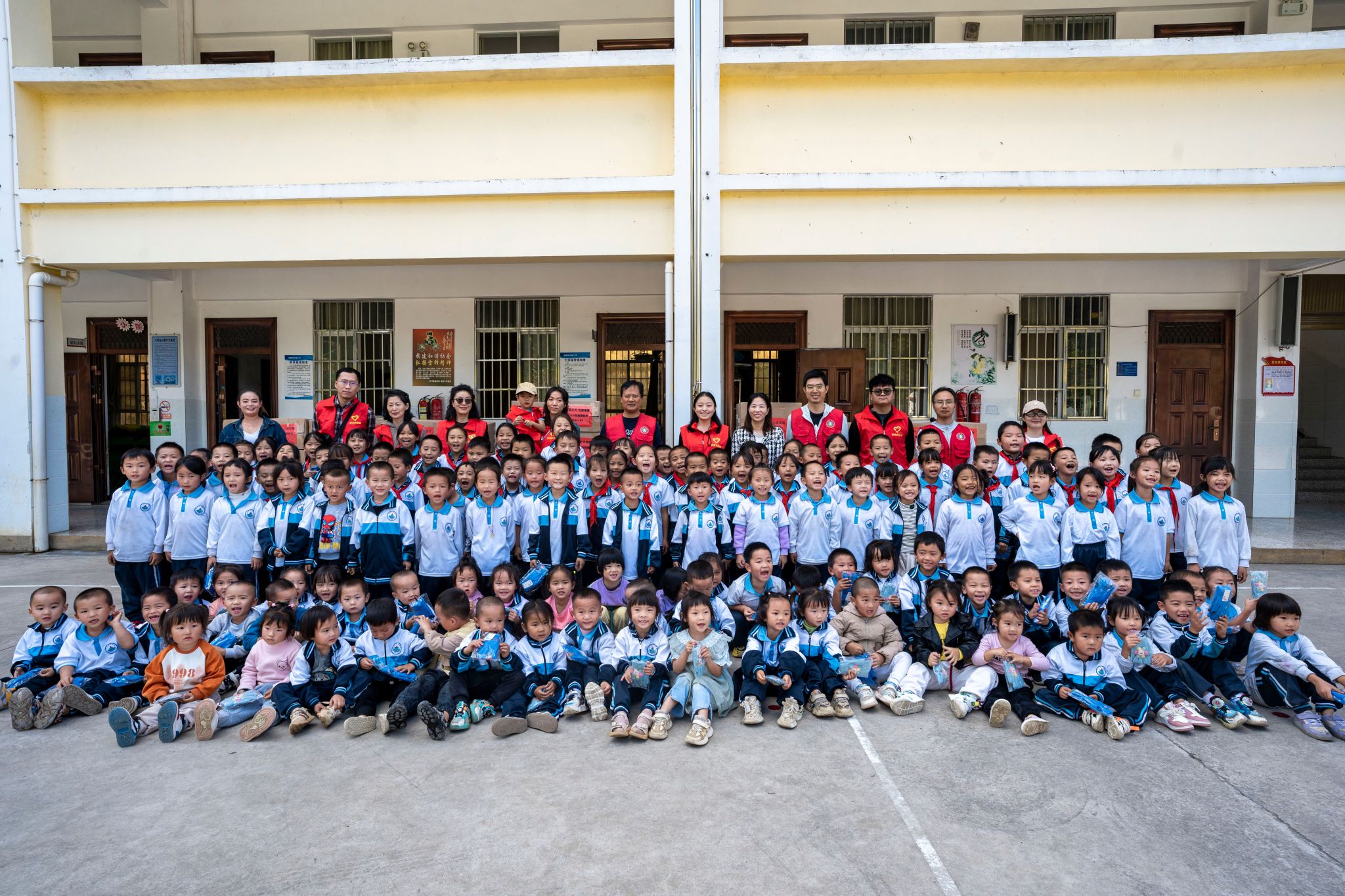 在发放物资的过程中,工作人员不仅为孩子们送上了手套、衣服、棉裤等过冬物品,还与他们一起唱歌、做游戏,欢声笑语充满了整个校园。孩子们的脸上洋溢着幸福的笑容,他们的眼中闪烁着对未来的憧憬与希望。